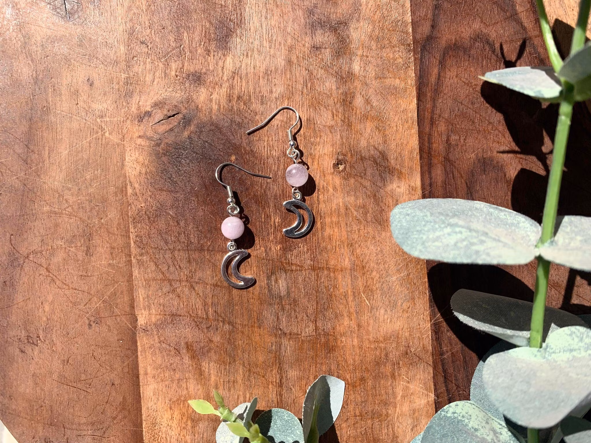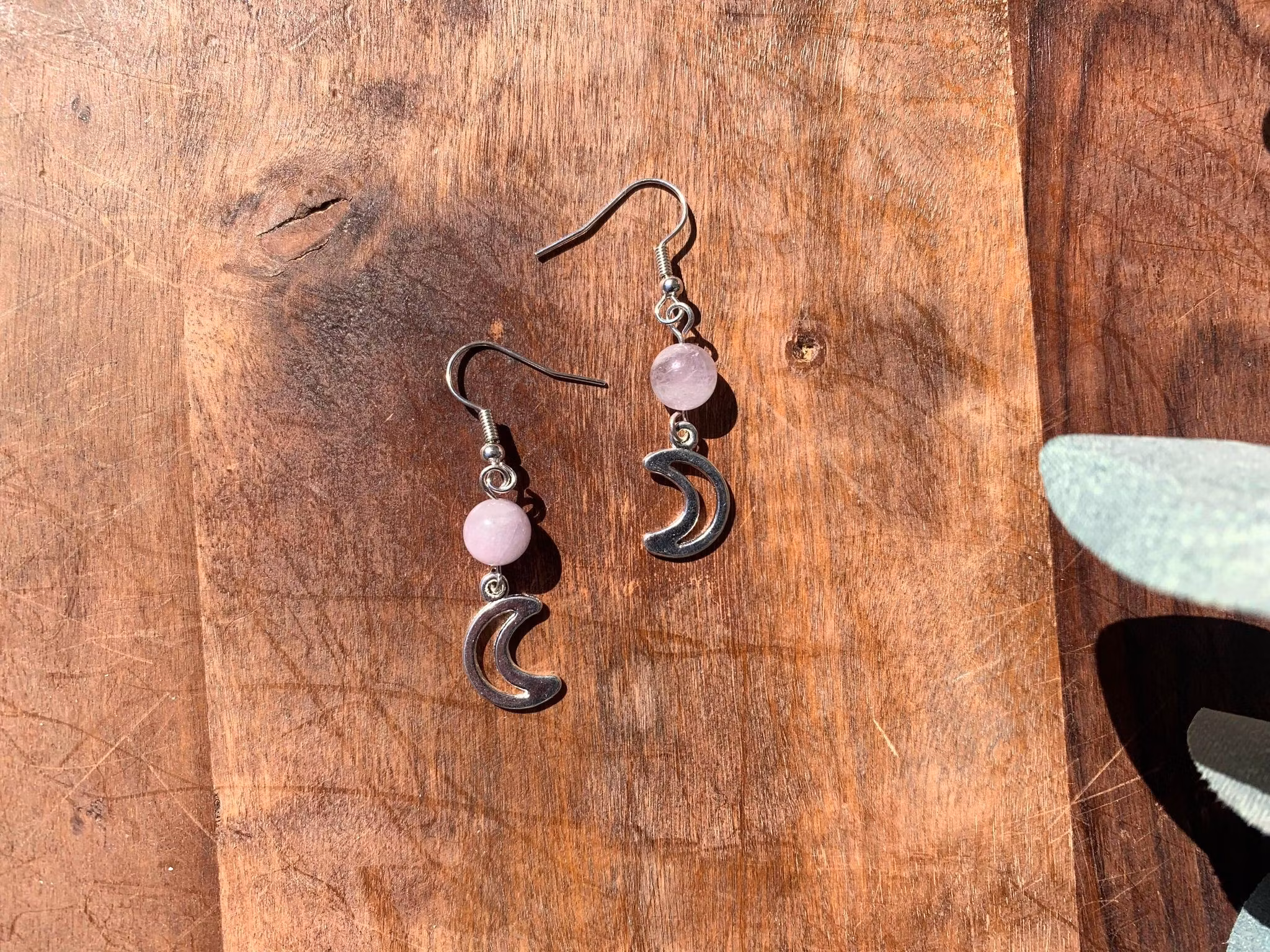 Earrings with kunziteAround 3cmTo make the jewelry last longer, avoid water, perfume, moisture and sun.Crystals and stones come from nature and therefore there
