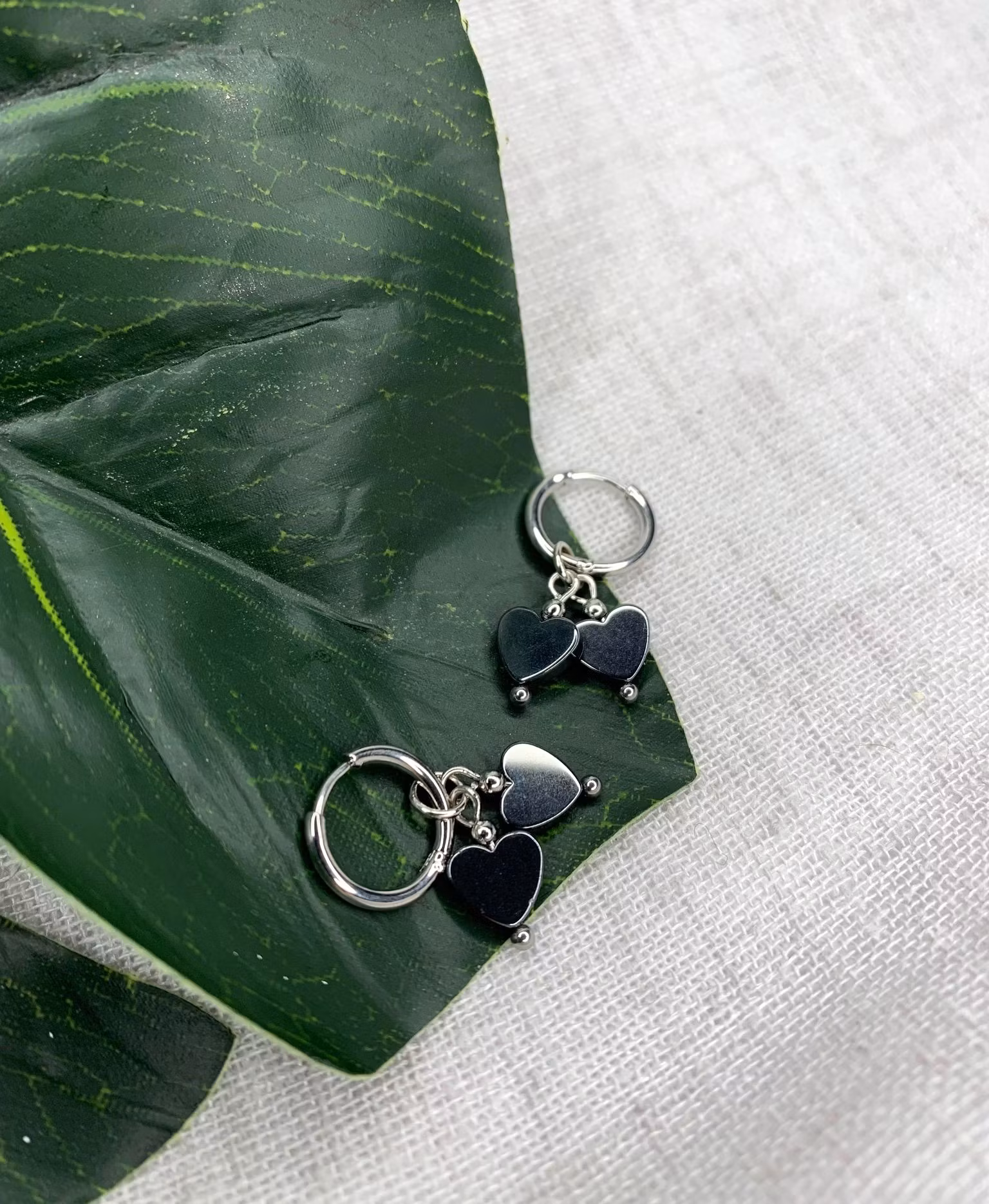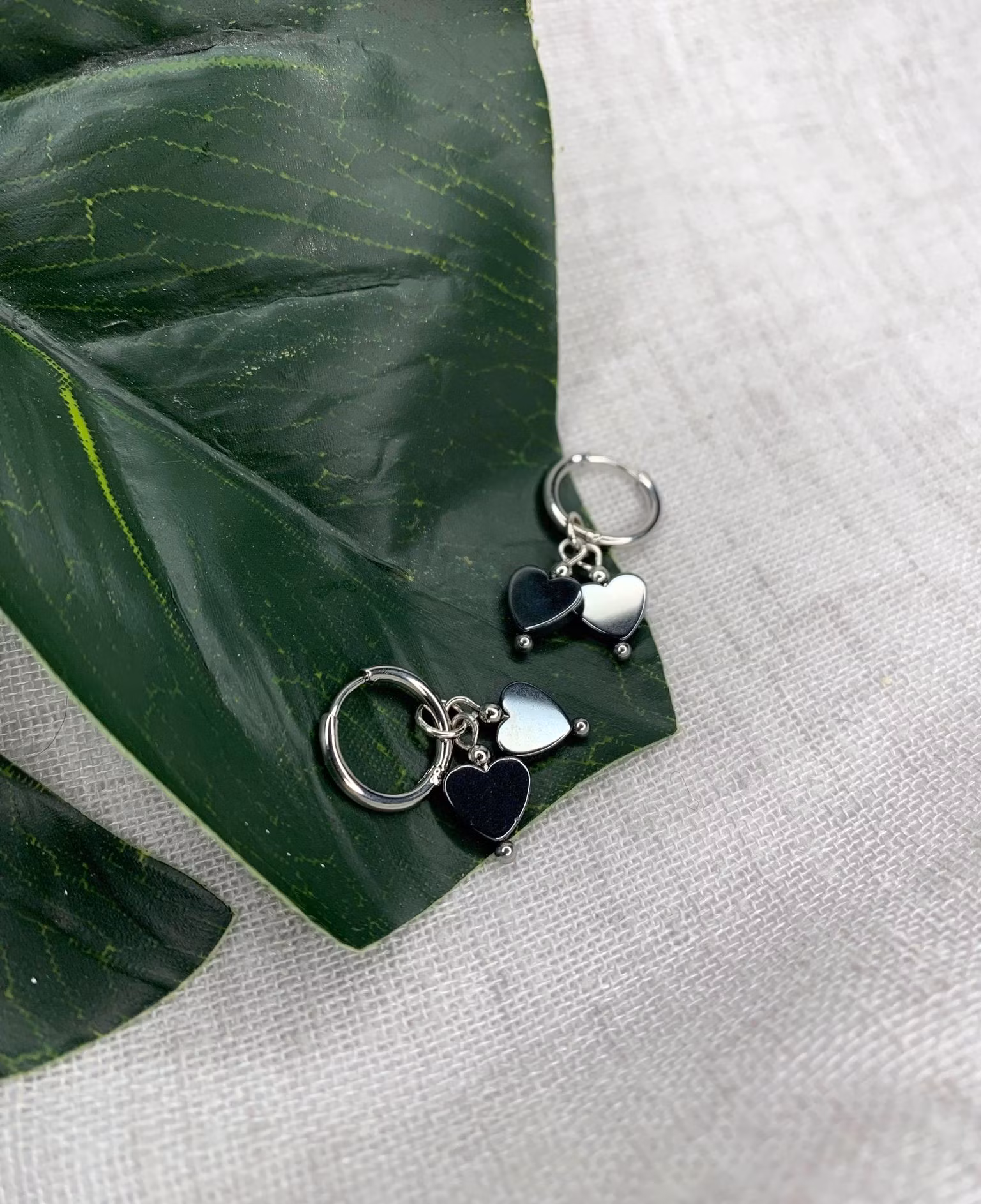 Ringar i rostfritt stål med hematit hjärtan