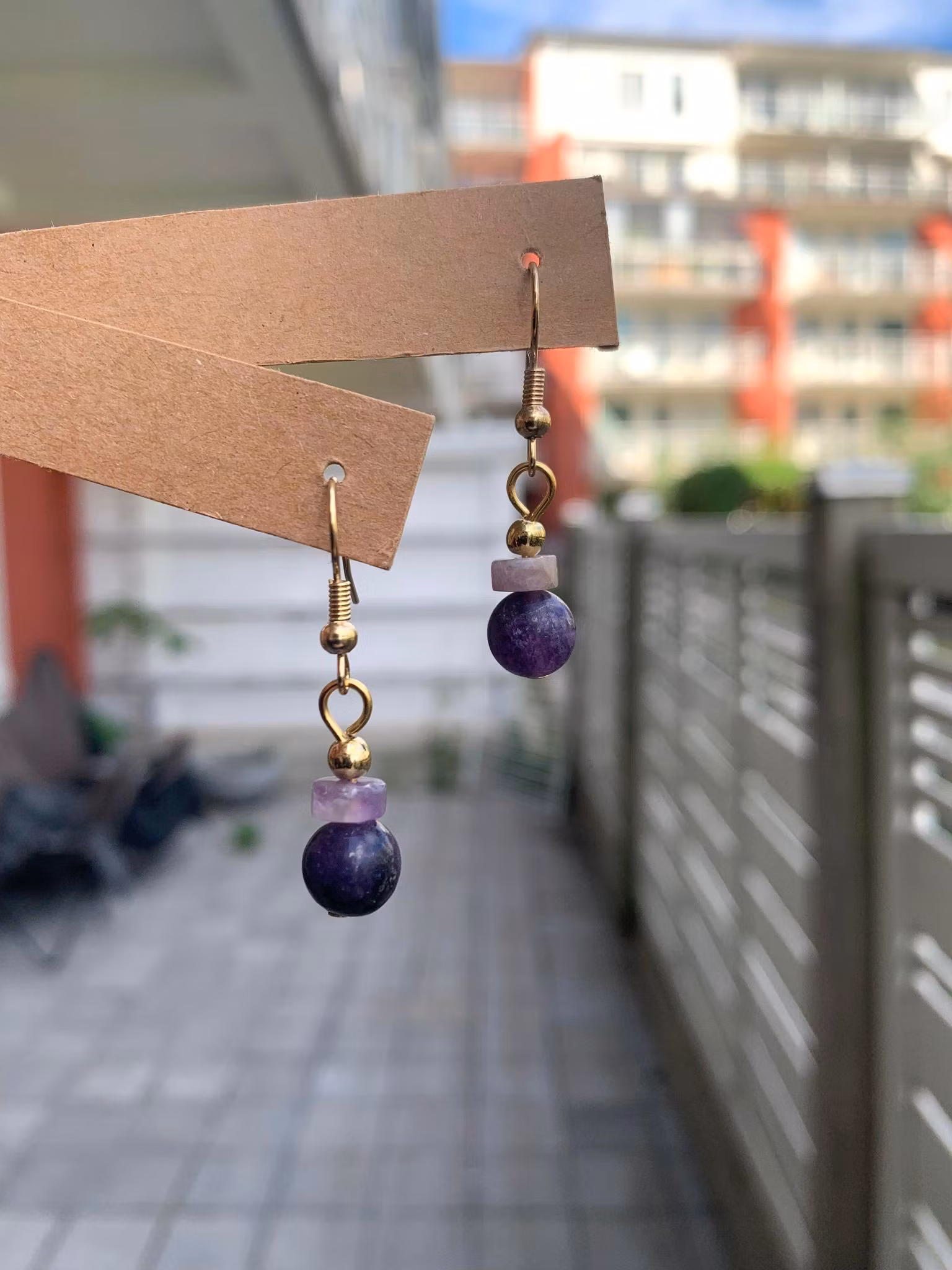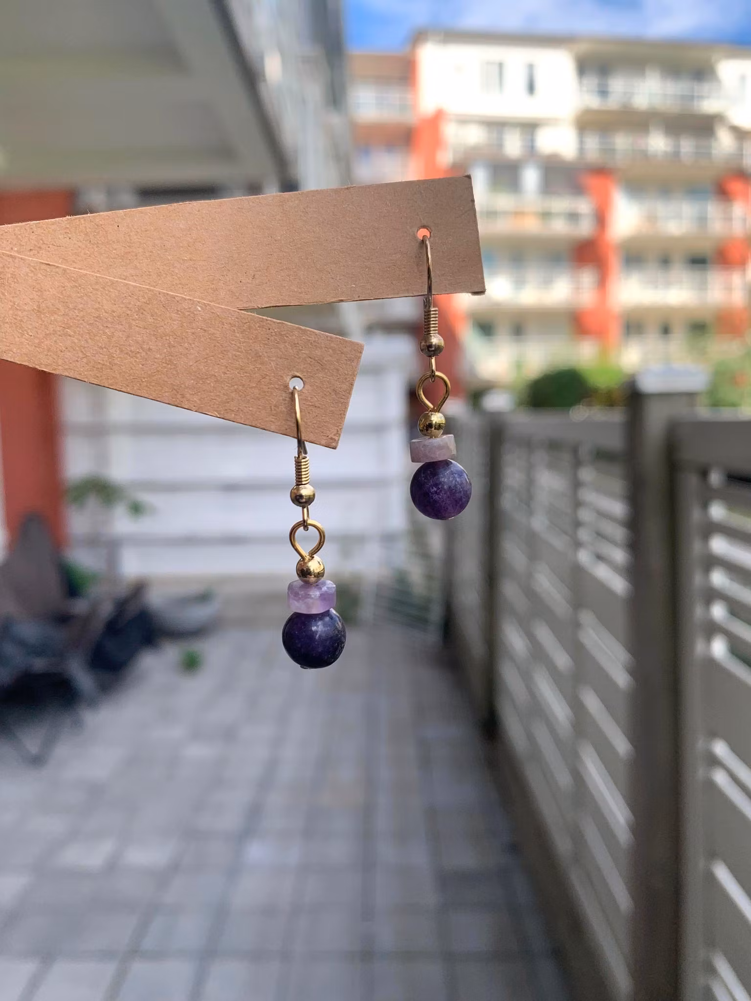Örhängen i guld med ametist pärlor