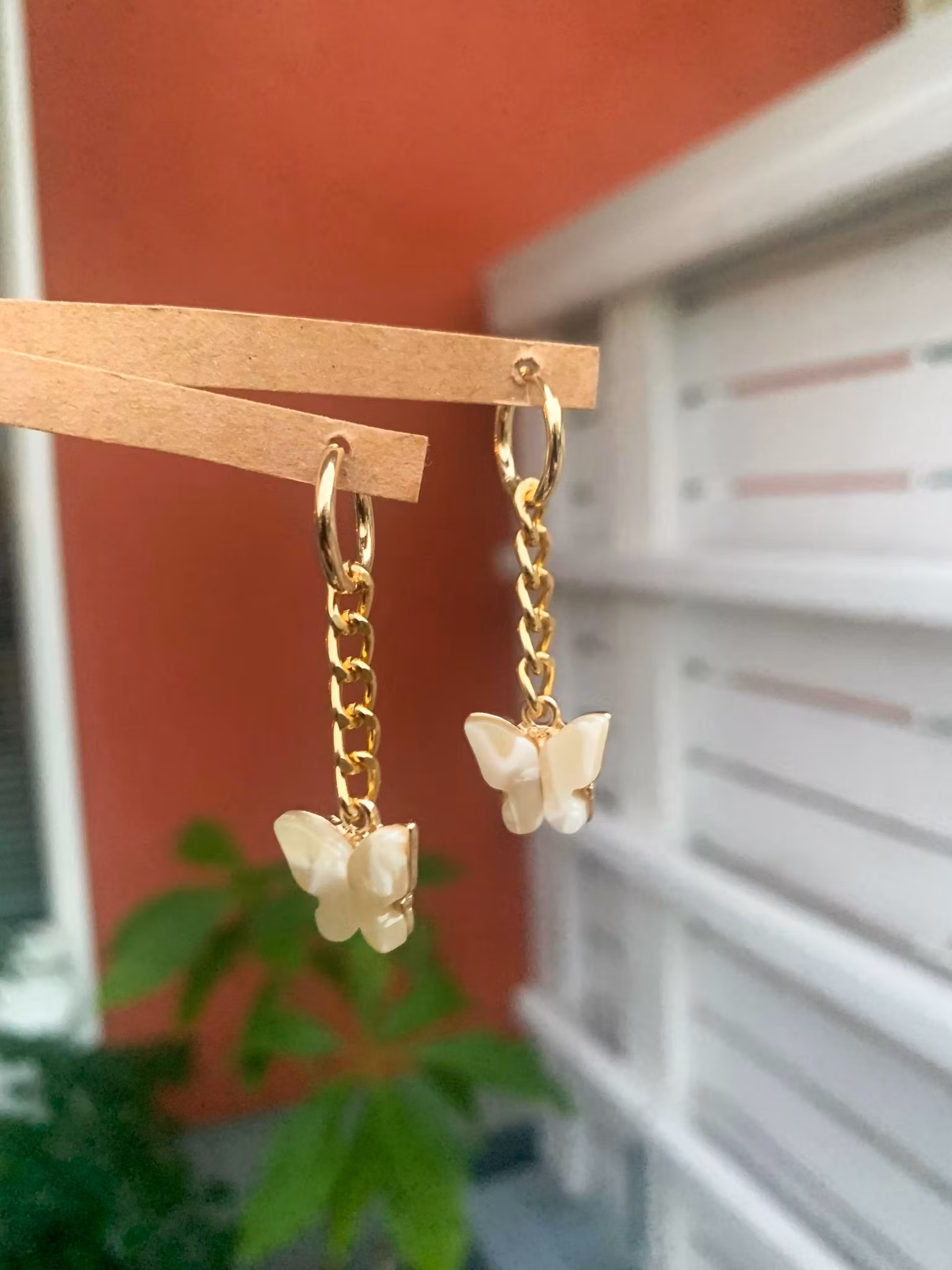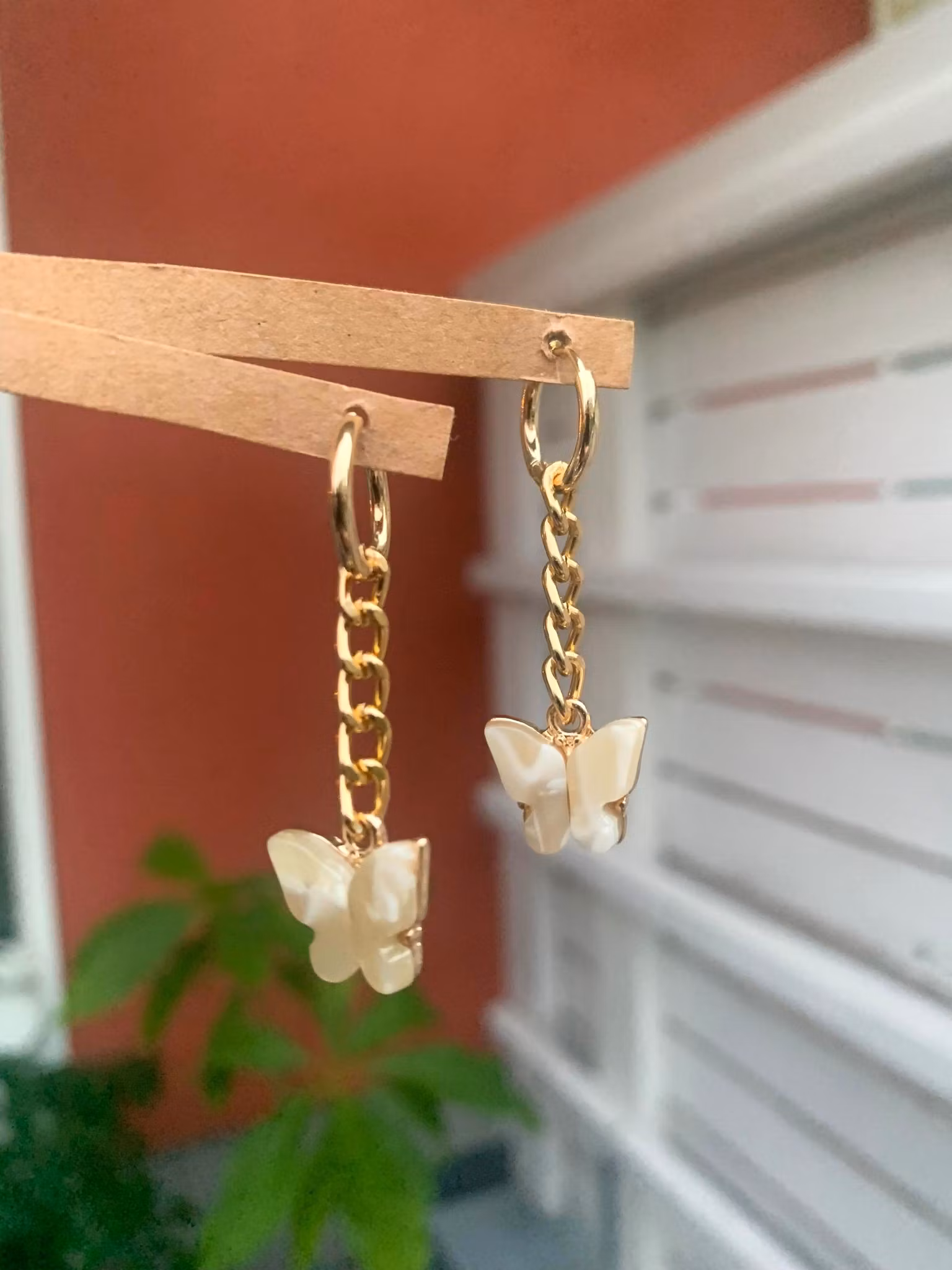 Örhängen i guldpläterat rostfritt stål, metall kedja och fjäril berlock