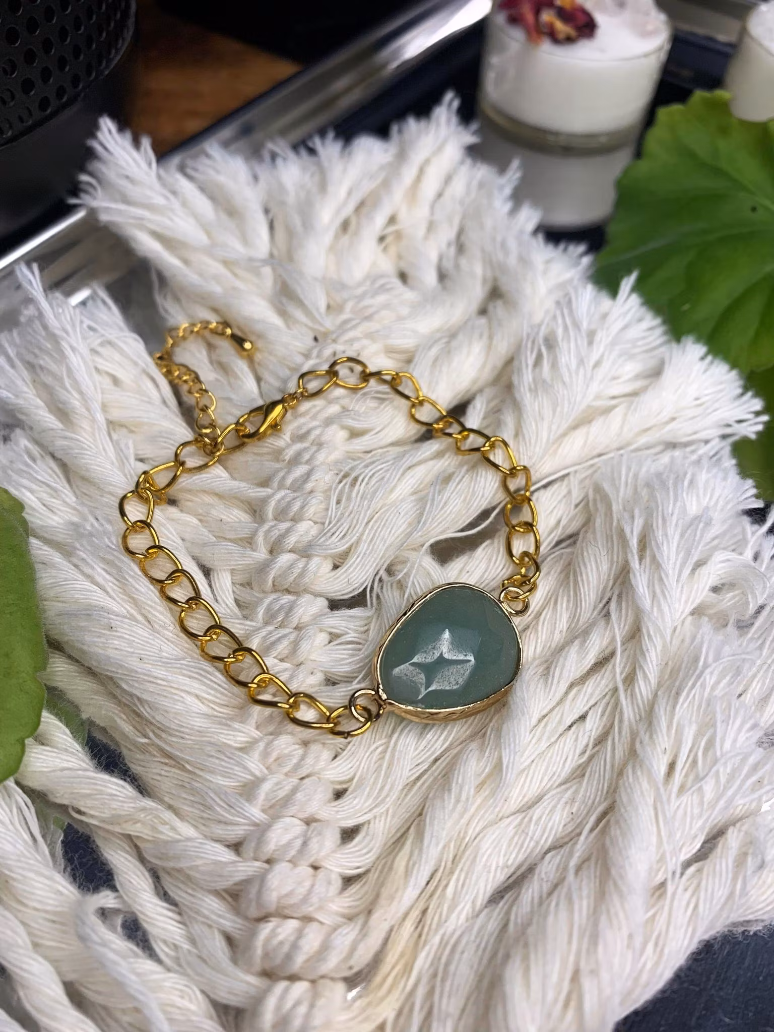 ☽ Grön aventurin sägs vara en balanserande och lugnande sten vid emotionell upprördhet. Den sägs också vara en lyckosten som drar till sig framgång ☾
