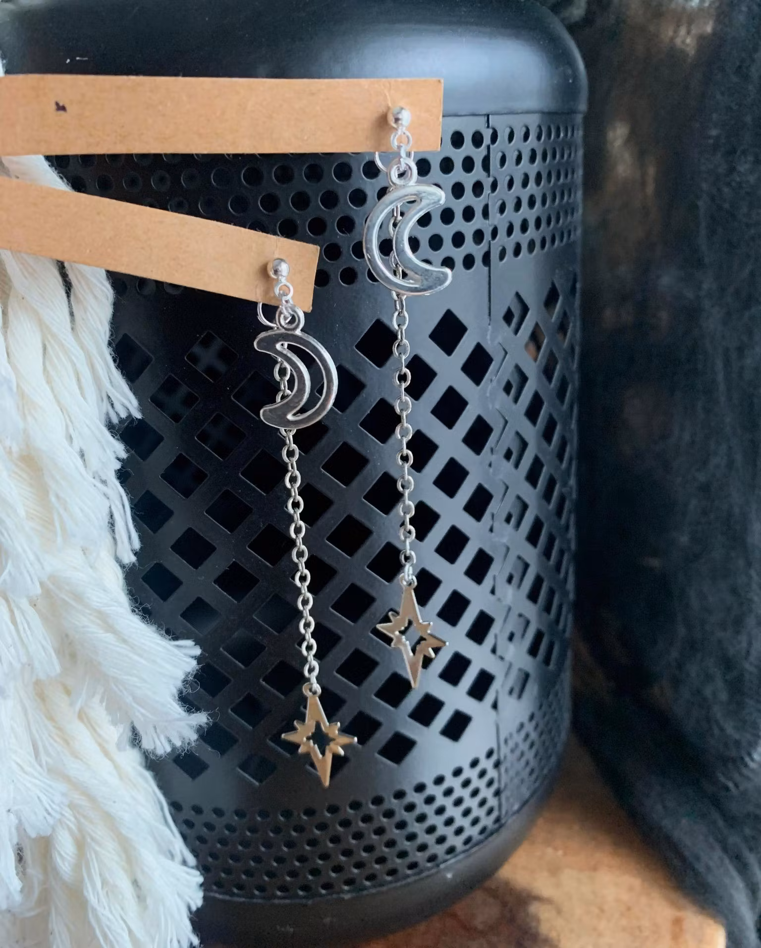 Örhängen i silver med måne och stjärna berlockCa mått: 8cm