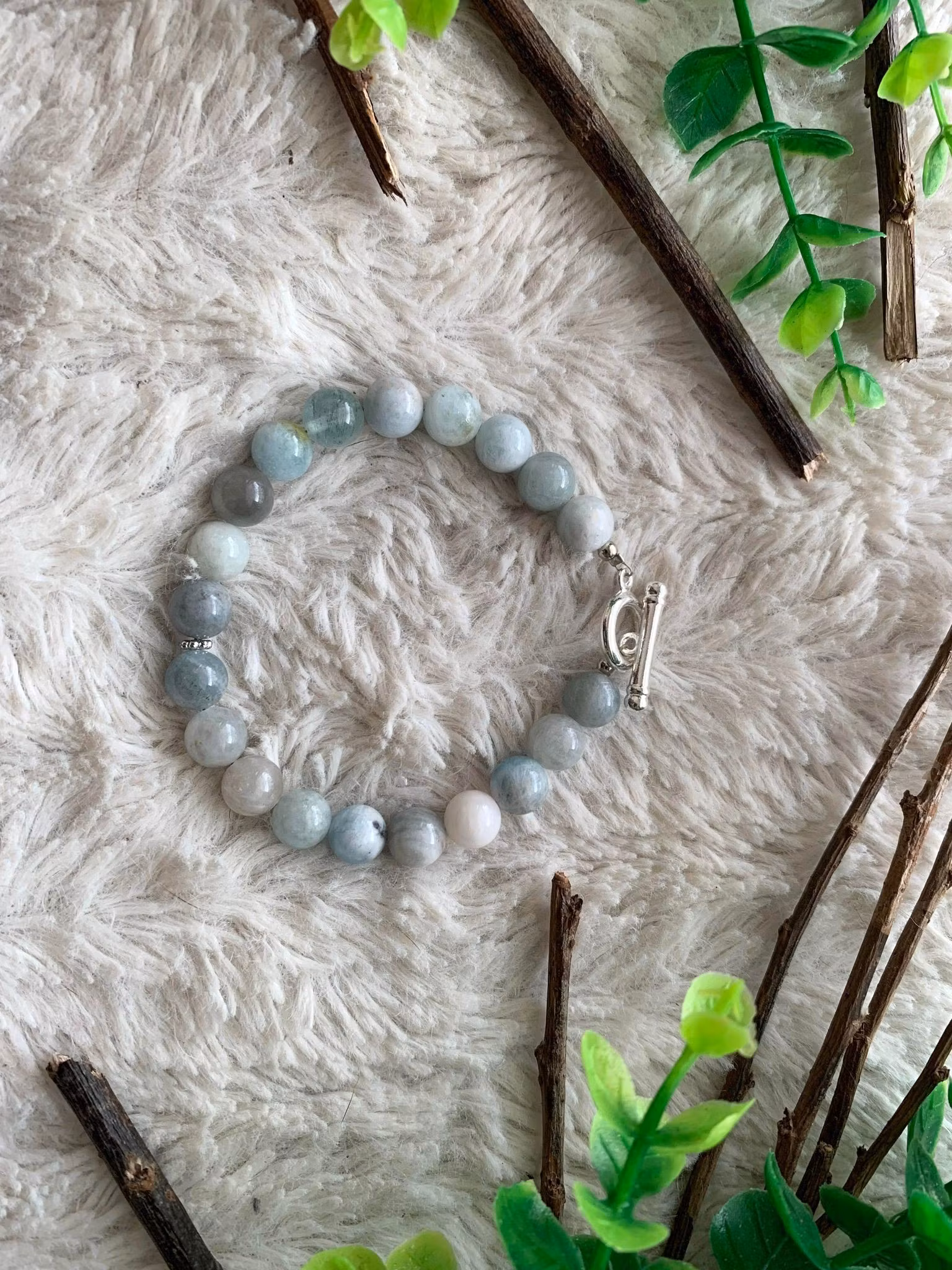 Fast armband med pärlor av akvamarin, sterling del och silver metall delar