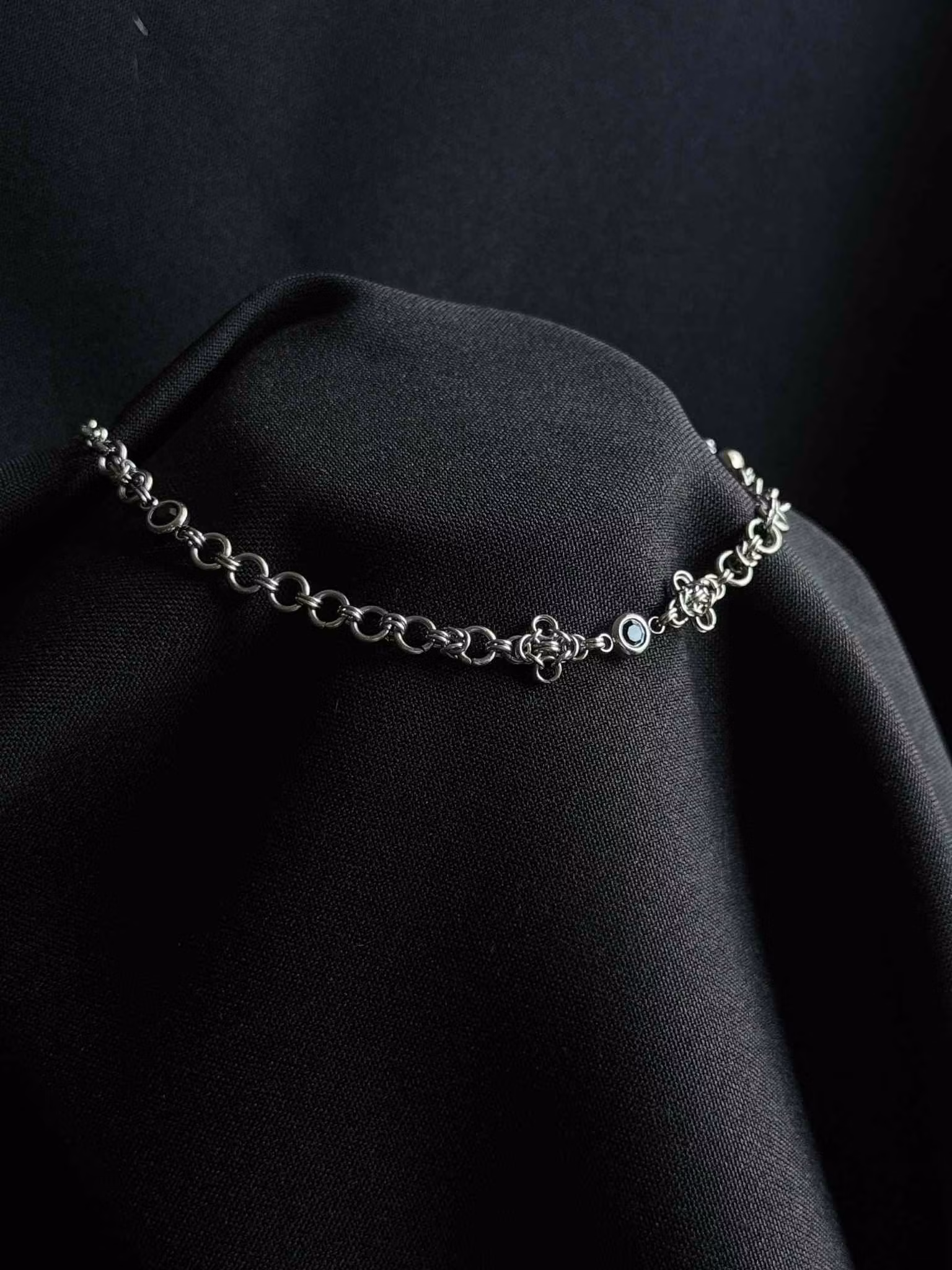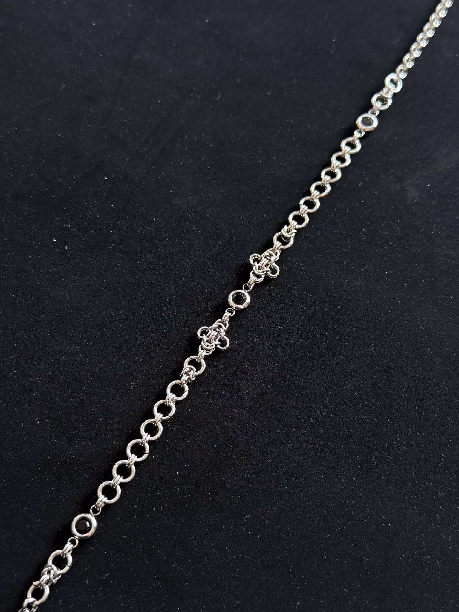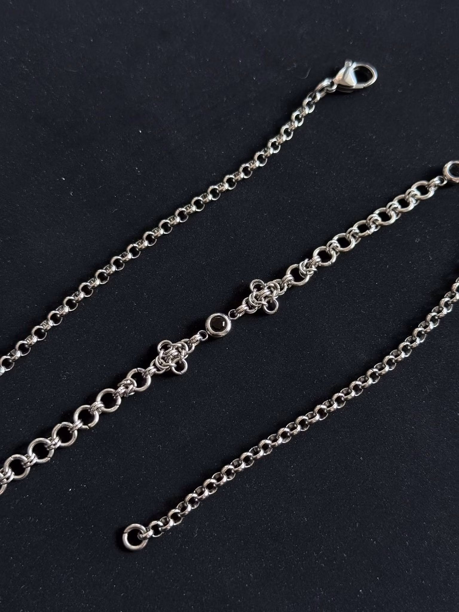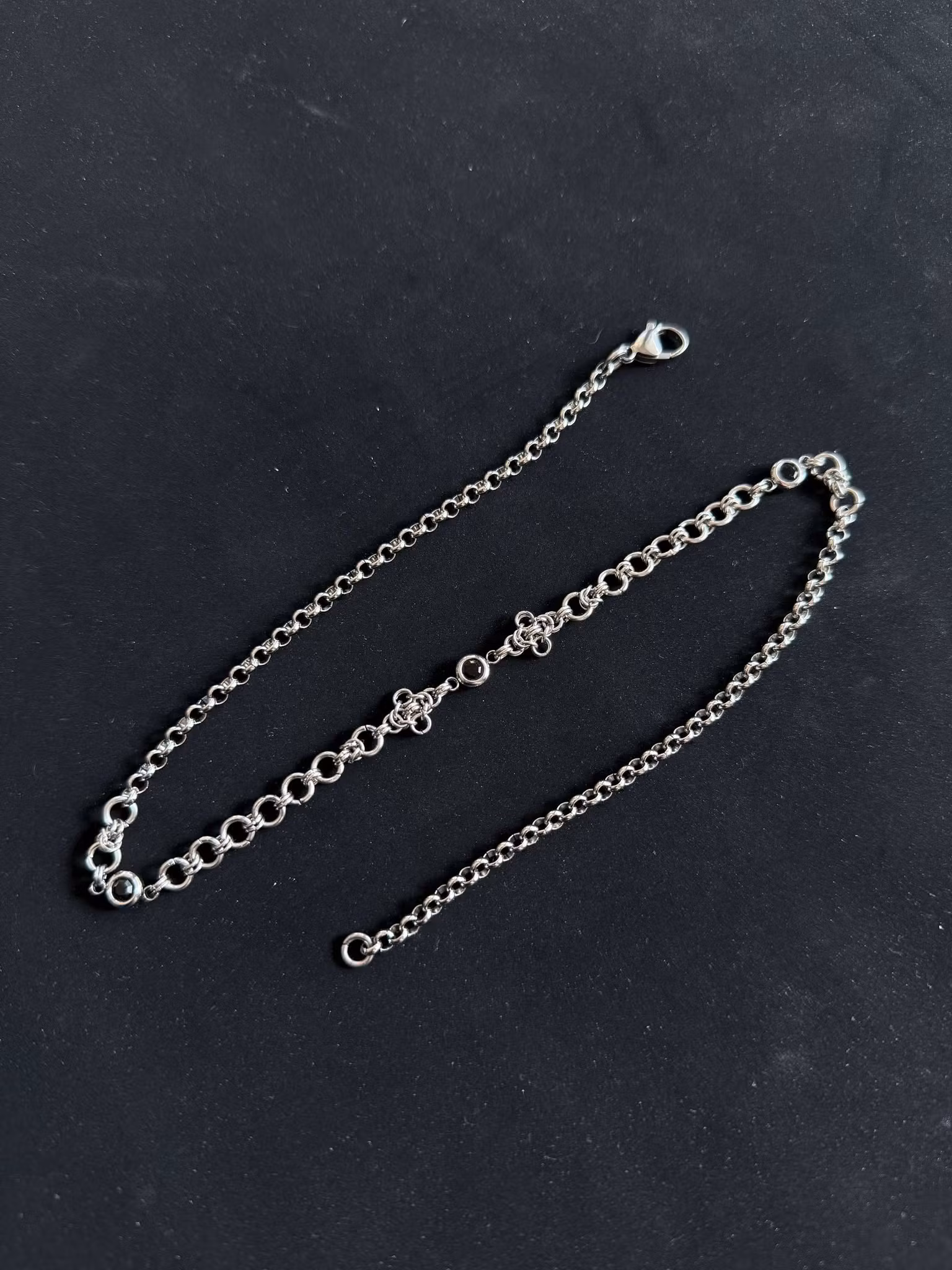 Dainty stainless steel necklace with black glass bead connectors