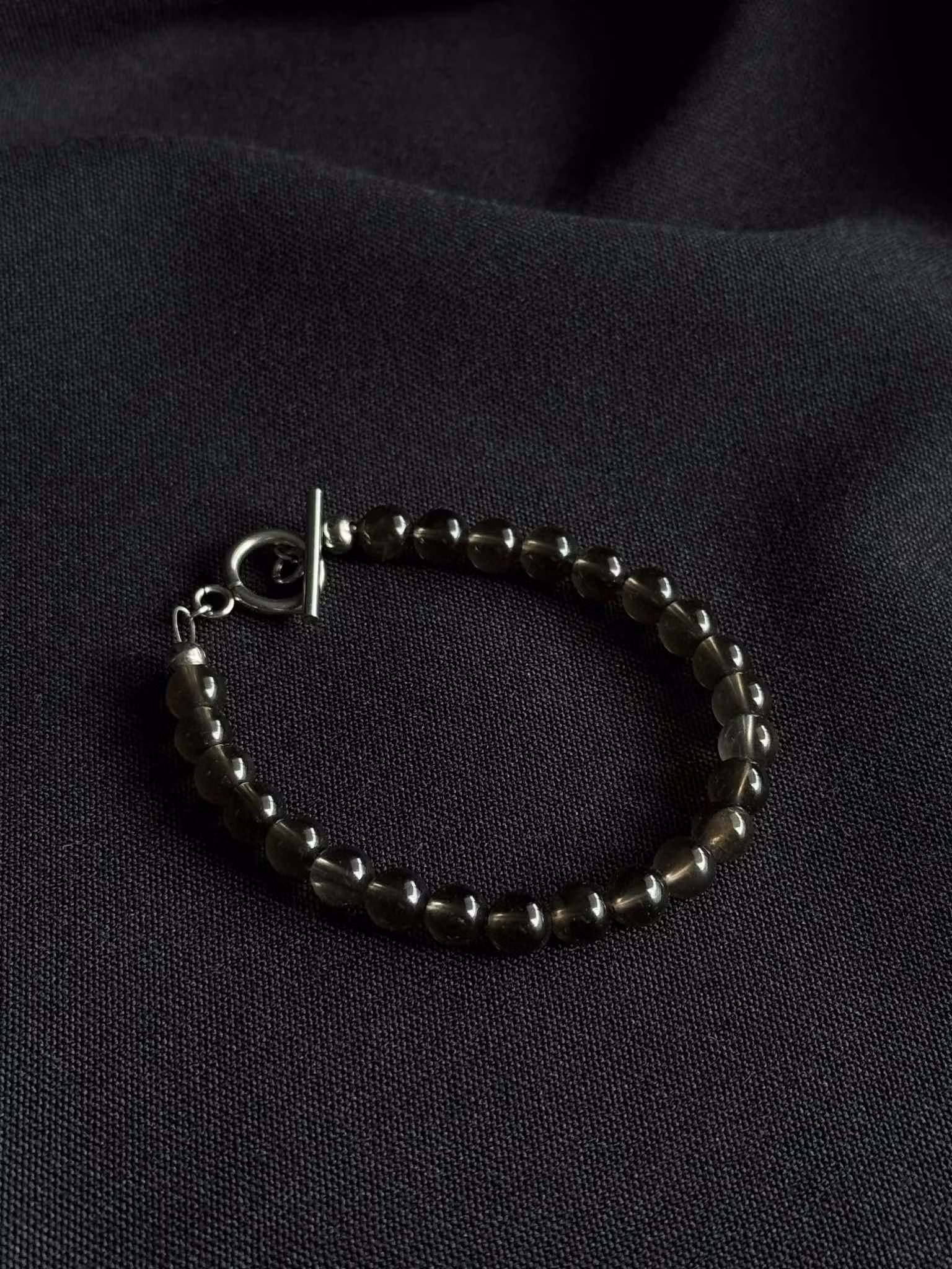 _______________________________________________________________________Specifications:Material: Stainless steel, smoky quartzLength: 20cm stretchedClasp: T-lock